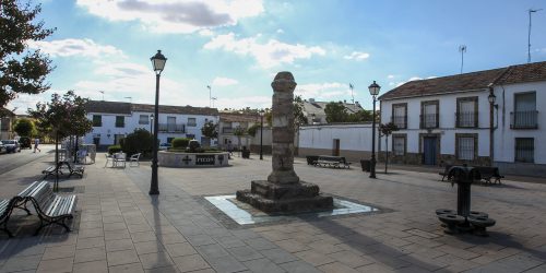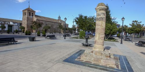 En la Plaza se encuentra la Iglesia Parroquial de San Salvador, interesante arquitectura religiosa del siglo XV, con una portada de ladrillo mudéjar en uno de sus laterales. Enfrente está el Ayuntamiento, obra civil del siglo XVI, que ha resistido el paso de los años. El último monumento de la Plaza de España es el Rollo, un pequeño obelisco de piedra situado en mitad de la plaza, símbolo muy importante para la villa y también de los escasos que aún existen en la provincia. Aunque originalmente era un lugar de castigo contra delincuentes, en la actualidad los mayores se reúnen a su sombra para recordar otros tiempos.